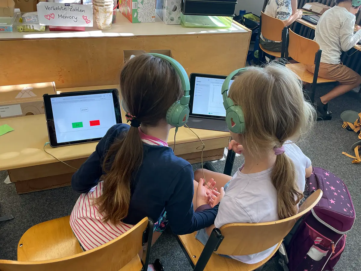 Unsere Tablets setzen wir sowohl zur individuellen Förderung durch diverse Lernprogramme ein, wie auch zur Lernstandserhebung und Diagnostik.